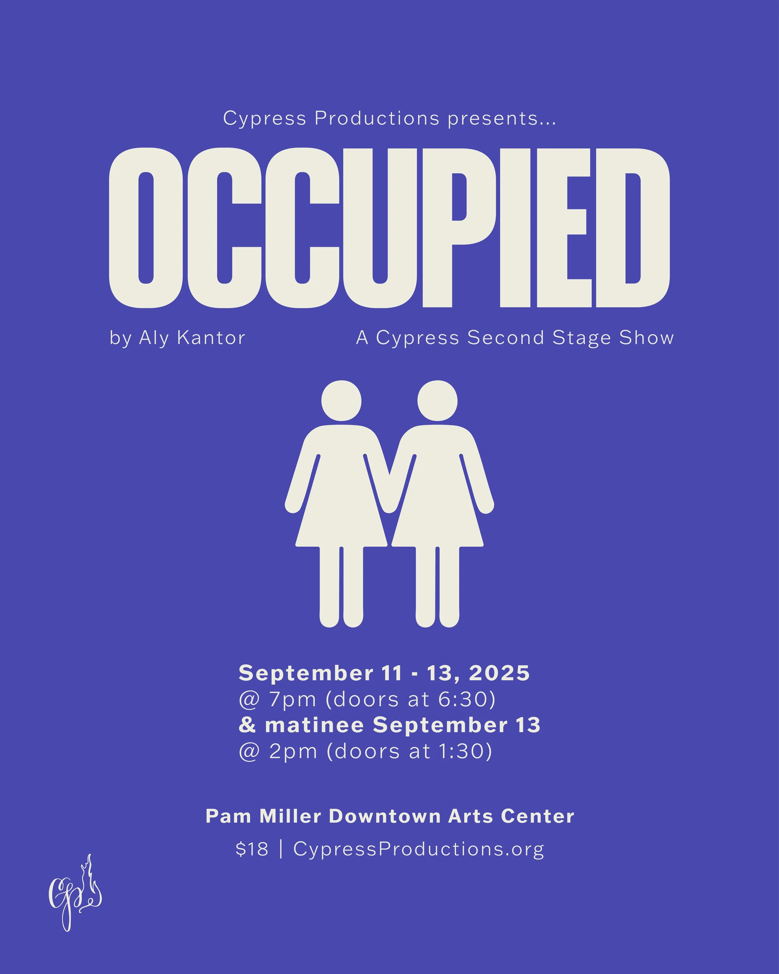 Again and again, best friends Jac and Amelia find themselves meeting in bathrooms, while real world tragedies and paradigm shifts assert themselves on the world outside. Vulnerability, humor, and uncensored honesty reign as they are forced to grapple with the question "Has anyone ever been safe? Are we?" Occupied is a critical examination of the millennial generation's relationship to safety, told through the lens of female friendship, from 9-11 to today